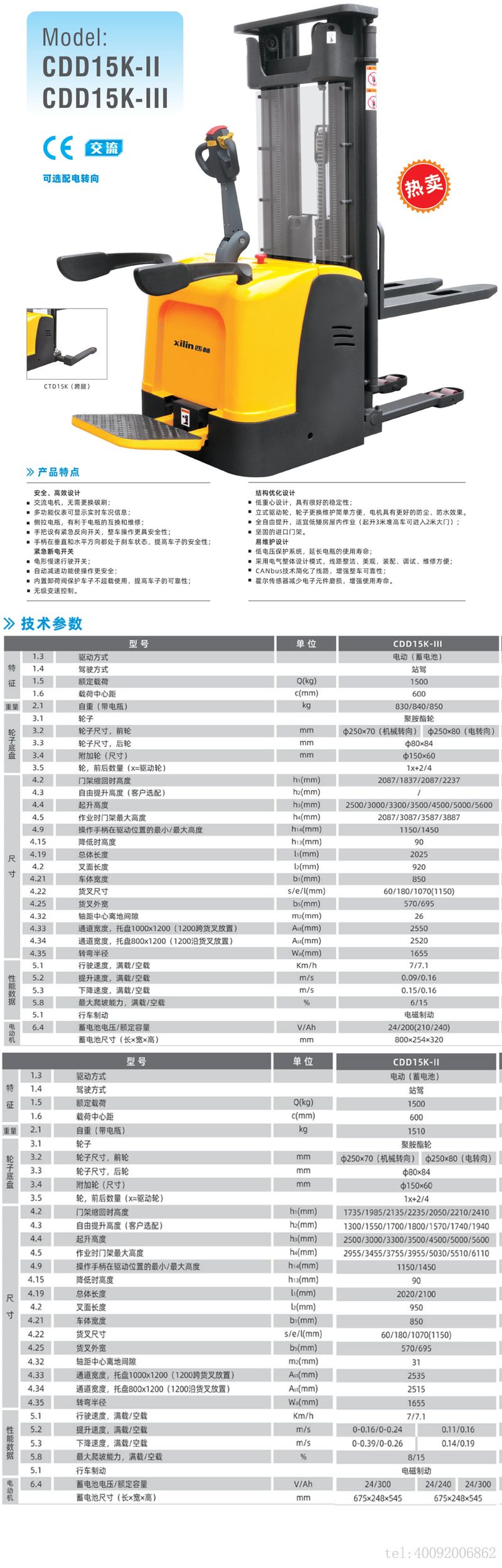西林叉車N系列——電動托盤堆垛車CBD15R-EN